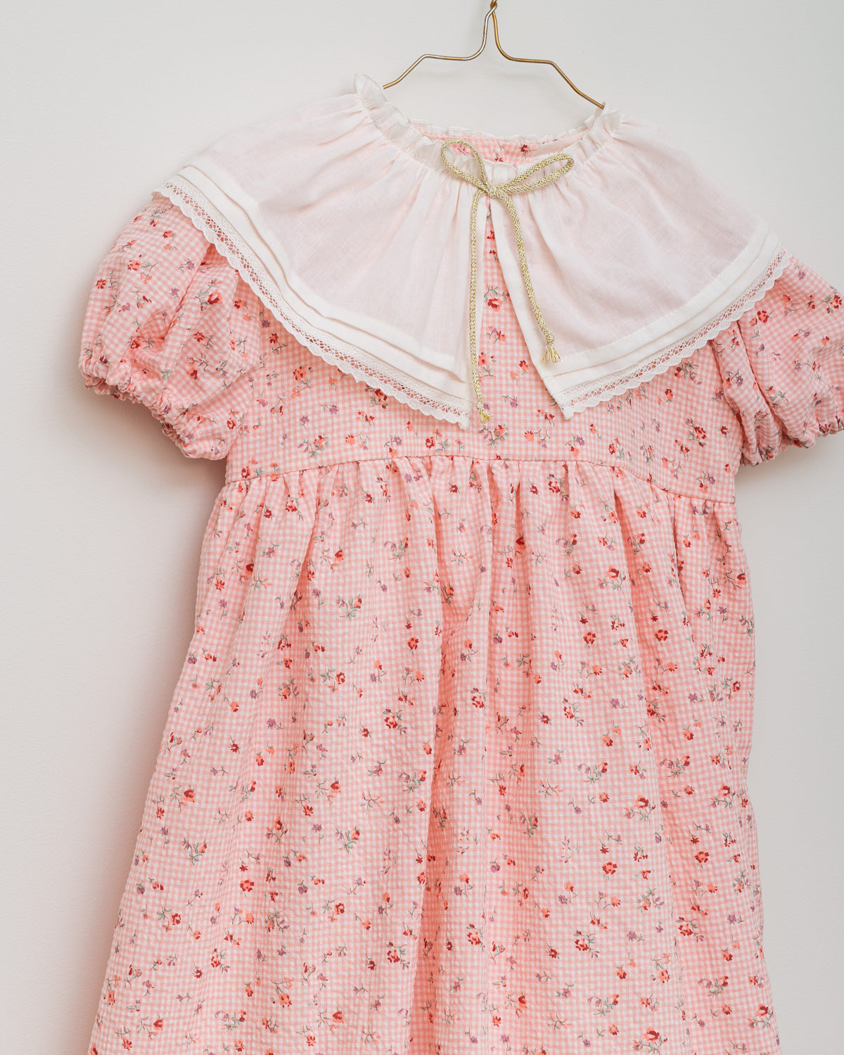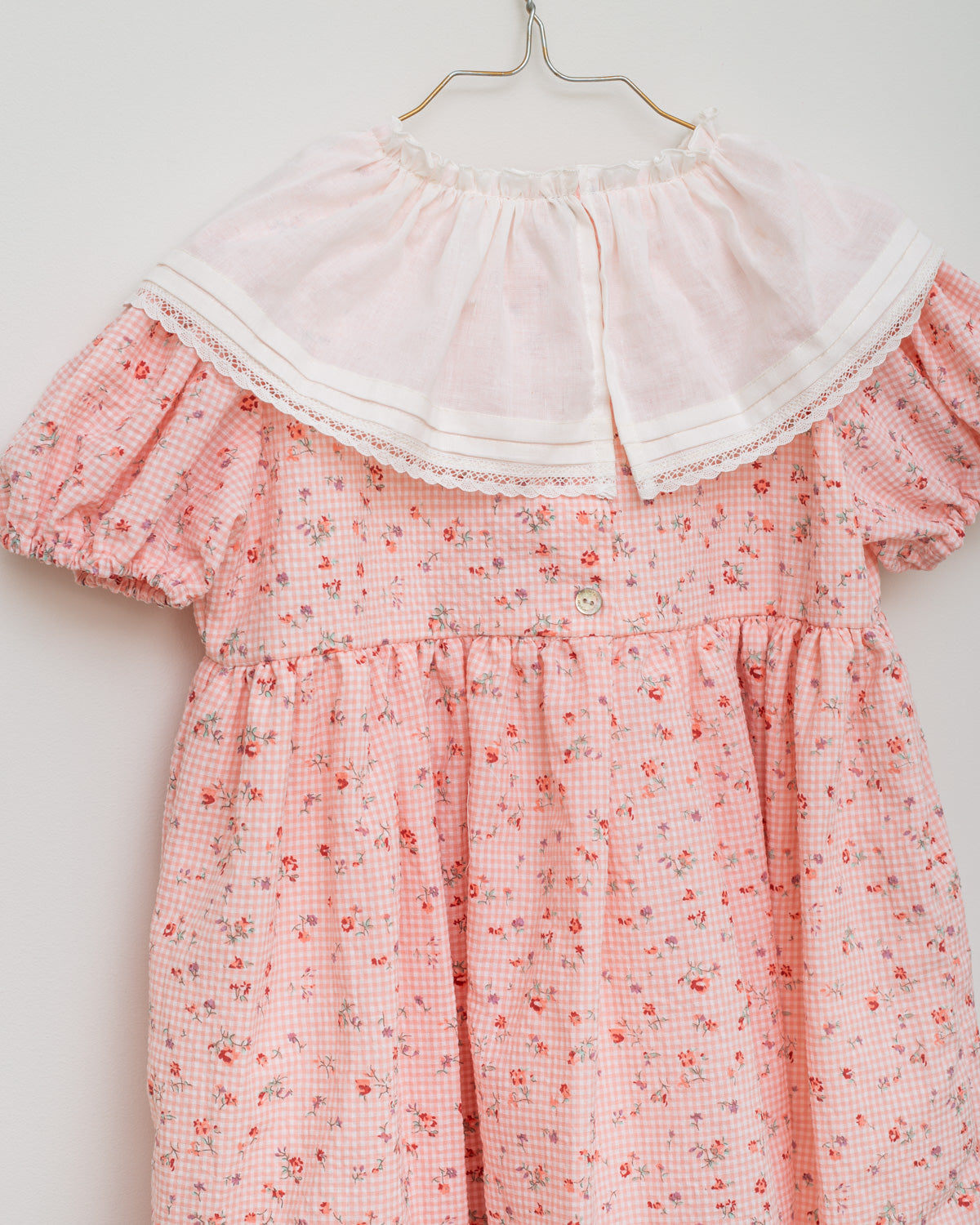 Bilma es uno de esos vestidos muy especiales con un toque vintage. Te encantará este precioso vestido por su estampado de cuadros rosas con flores y la suavidad de su tejido de algodón.