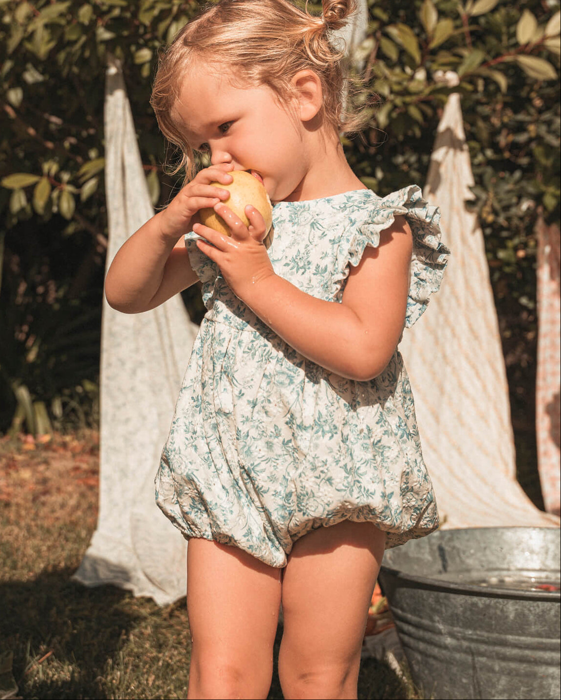 Baby romper made from beautiful embroidered batiste with a floral print.