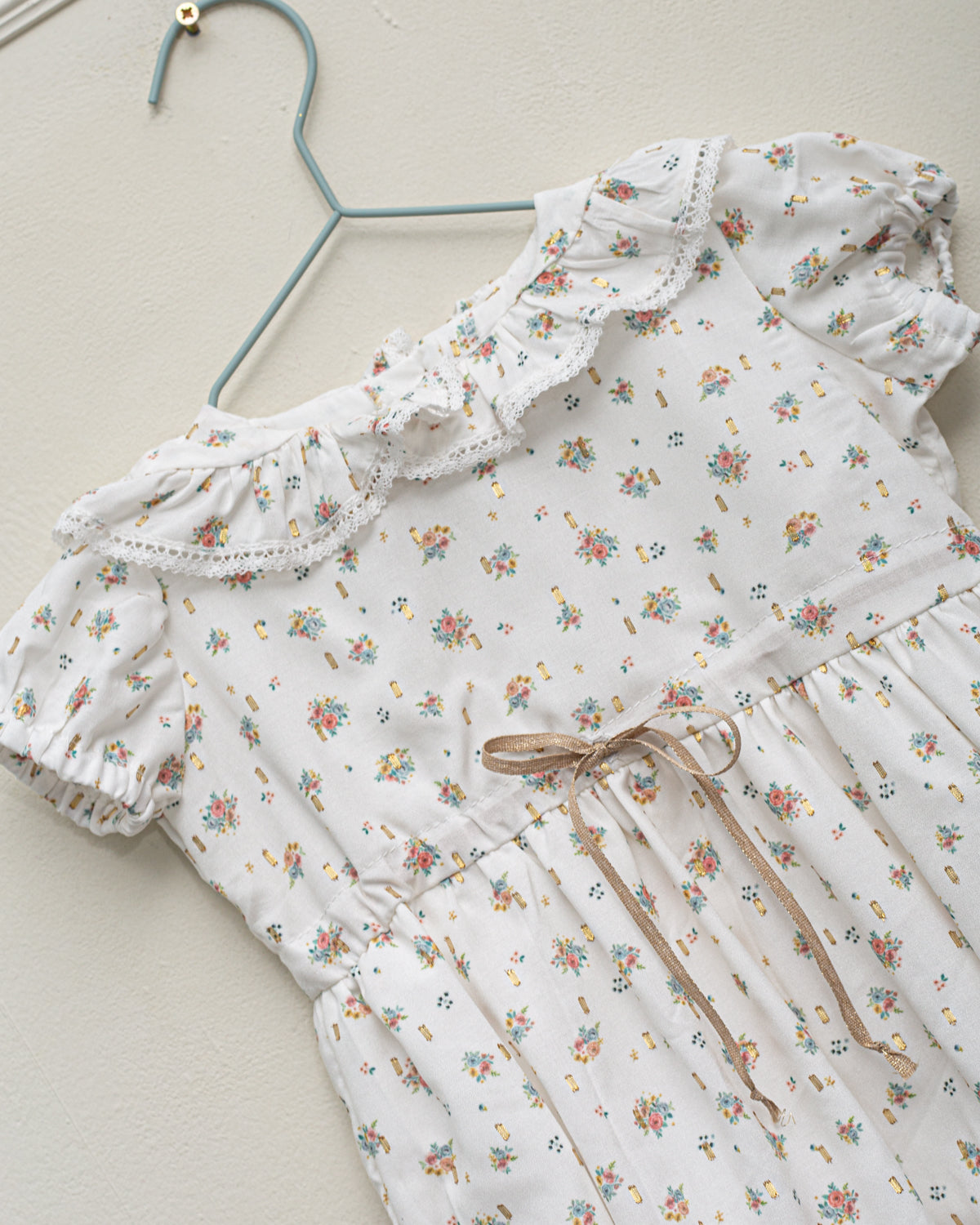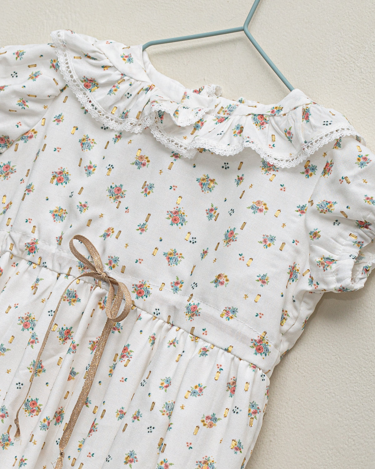 Crafted from a soft viscose fabric with a floral print and delicate gold accents. Lined in Cotton.