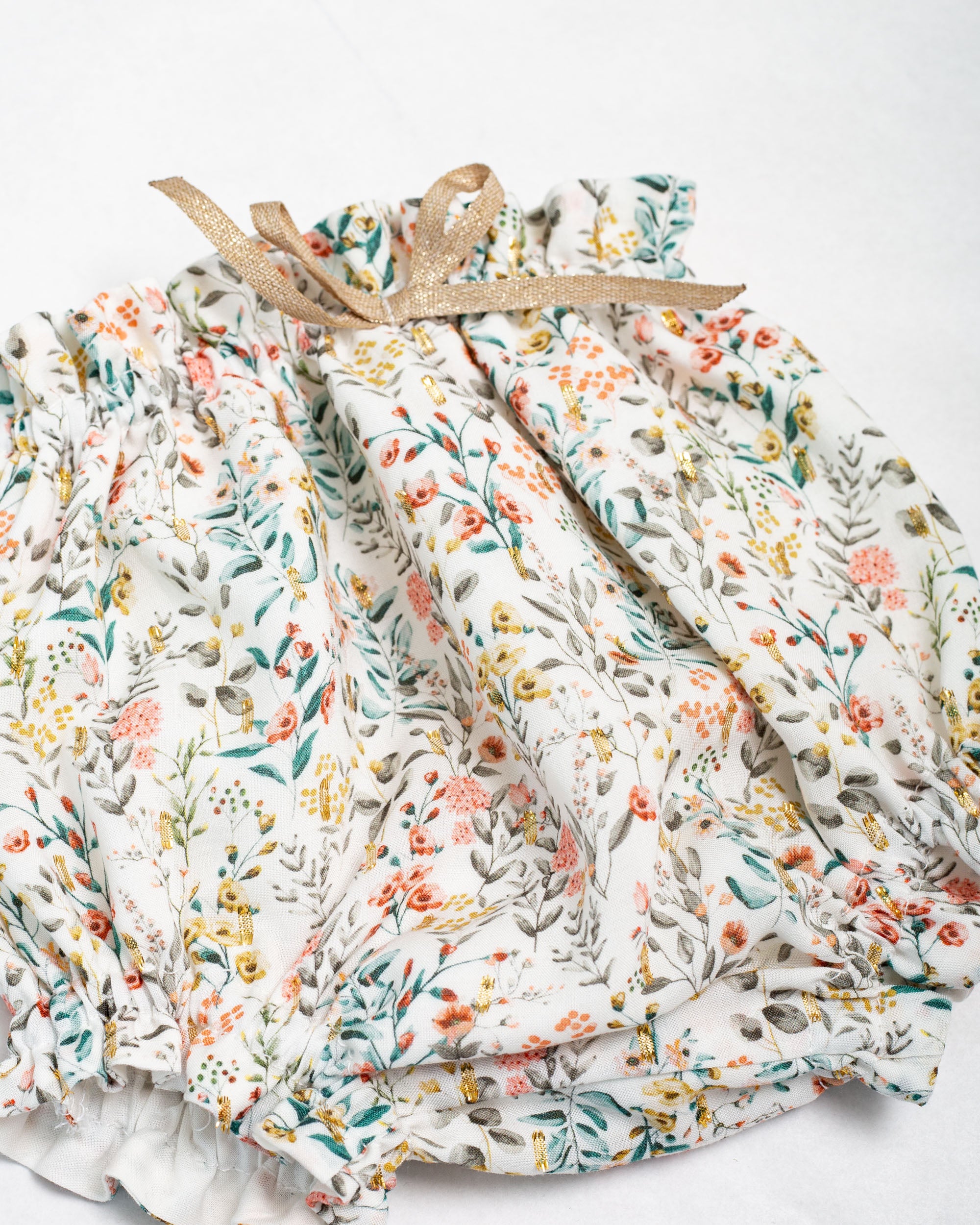 2. In the same print, bloomers with elastic at the thighs and waist and pretty bow detail at the waist.