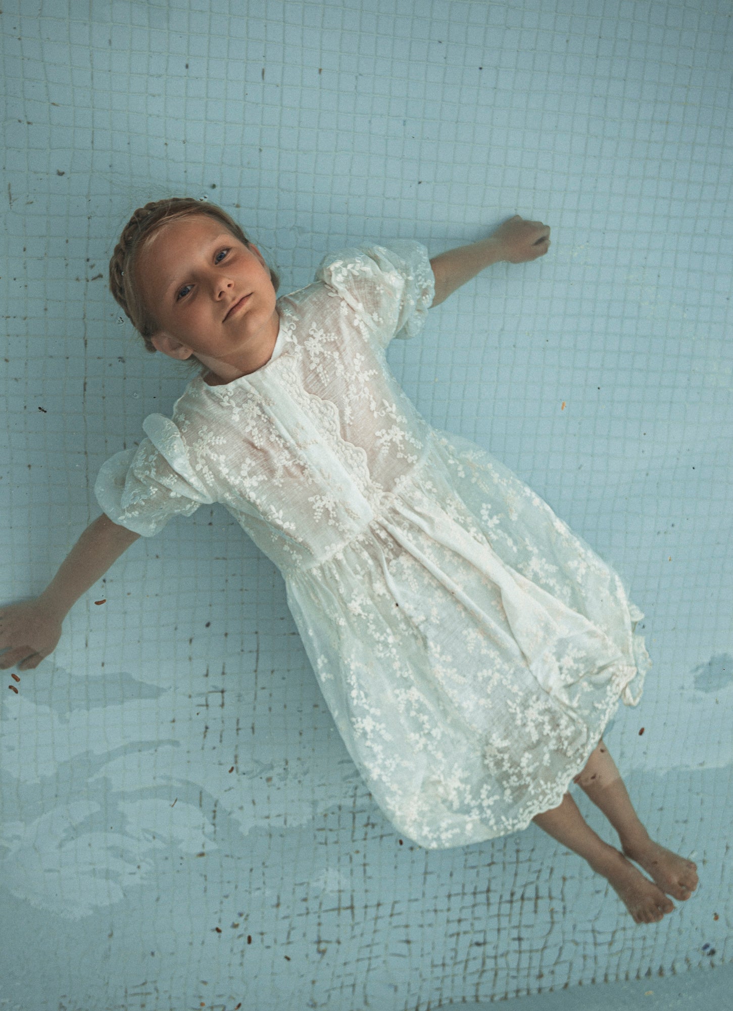 Beautiful beige embroidered bambula dress. Perfect as a guest outfit for a special occasion, a wedding, or a First Communion.