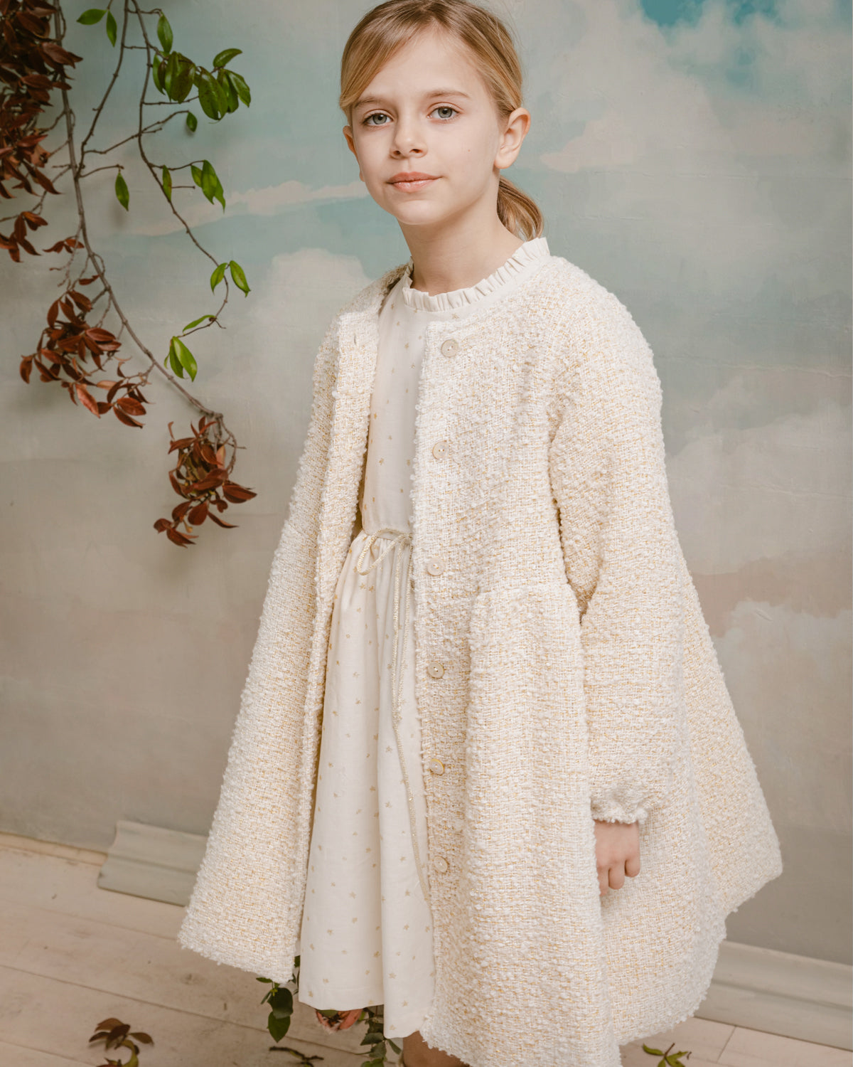 Sophia Coat Ecru Tweed / Abrigo tweed crudo y oro Sophia